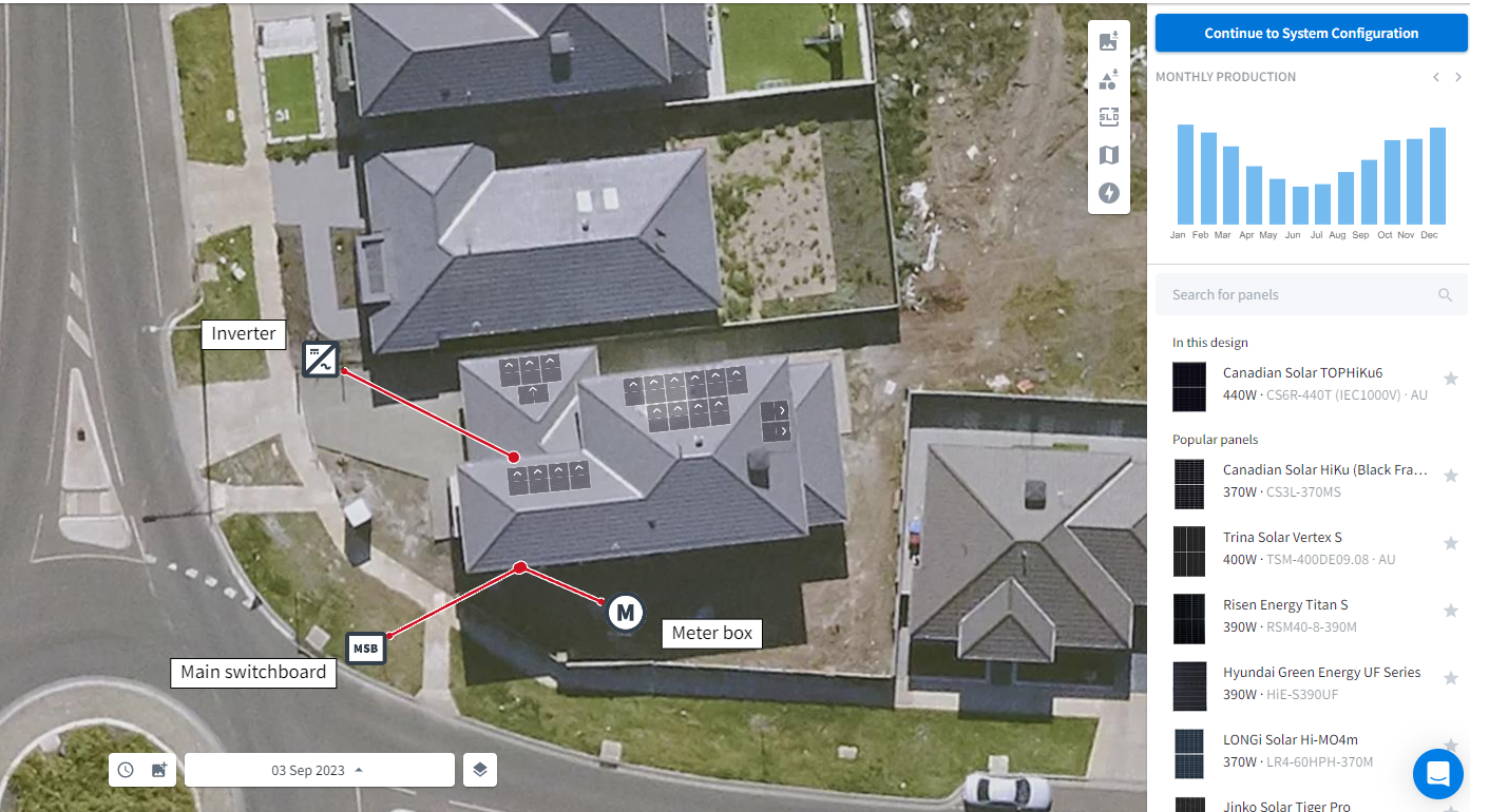To further refine our product recommendations and ensure a perfect fit for your home, we utilise advanced solar software such as Pylon or Nearmap. This tool allows us to model your solar system’s performance based on your specific roof layout and energy consumption patterns. The result is a system that’s not just efficient but also perfectly suited to your property.